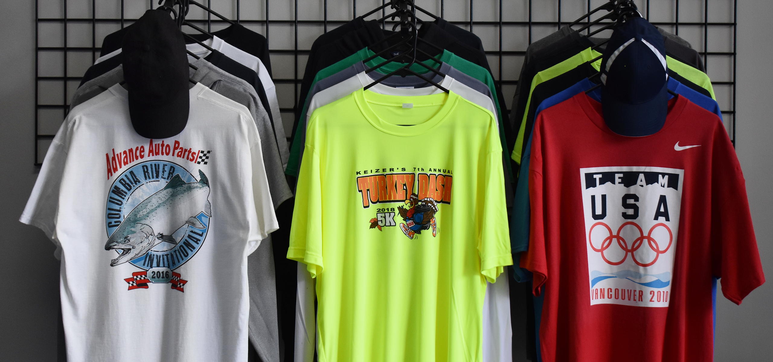 Promotions West Screenprinting creates t-shirts for fundraisers, sporting events, school functions, business meetings, tournaments, church events, and more. If you are local, come see our showroom for samples, catalogs, and design ideas. We look forward to working with you!